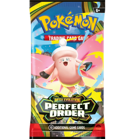 The pulse of the city beats in sync with the Pokémon and people who call it home—and preserving the order of it all is Mega Zygarde ex, the Legendary Pokémon who embodies strength in numbers! With threatening forces held at bay, peaceful days are ahead for the city's residents, including Pokémon like Mega Clefable ex, Mega Starmie ex, and Meowth ex, in the Pokémon TCG: Mega Evolution—Perfect Order expansion!